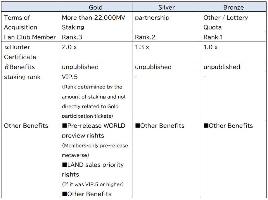 (1) Closed participation ticket (Gold) -> For those who have officially staked 22,000MV or more.