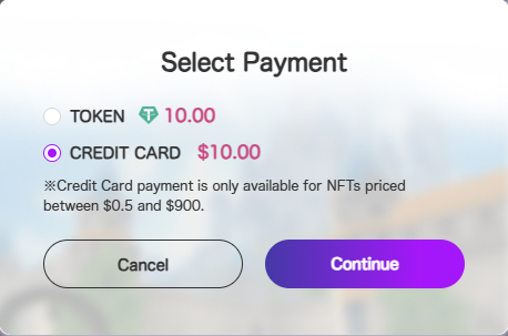 ※Credit Card payment is only available for NFTs priced between $0.50 and $900.