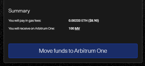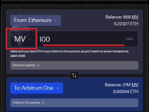 - To bridge MV (ETH) to MV (ARB), Ethereum will be required for gas fees.