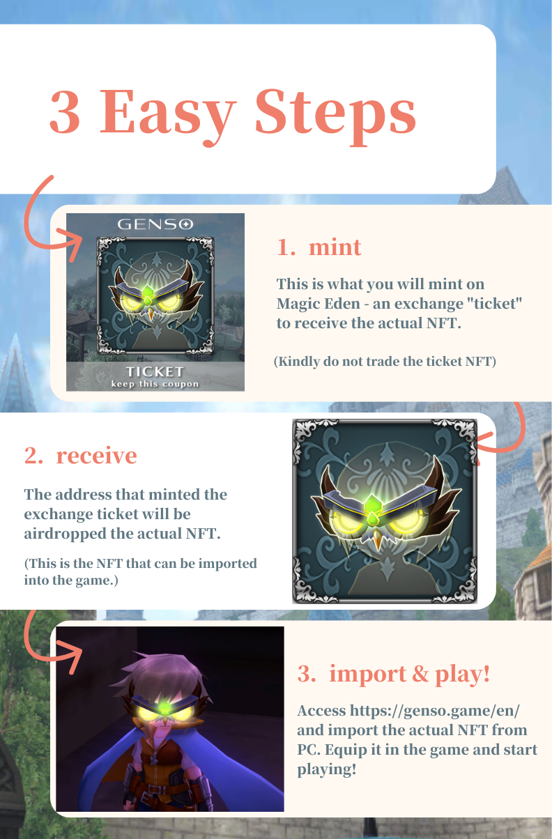 Therefore, the actual Genso NFTs will be airdropped directly to the address that minted the ticket. So kindly do not trade the ticket NFT on the secondary market. Wait until you receive the actual NFT if you want to trade it.