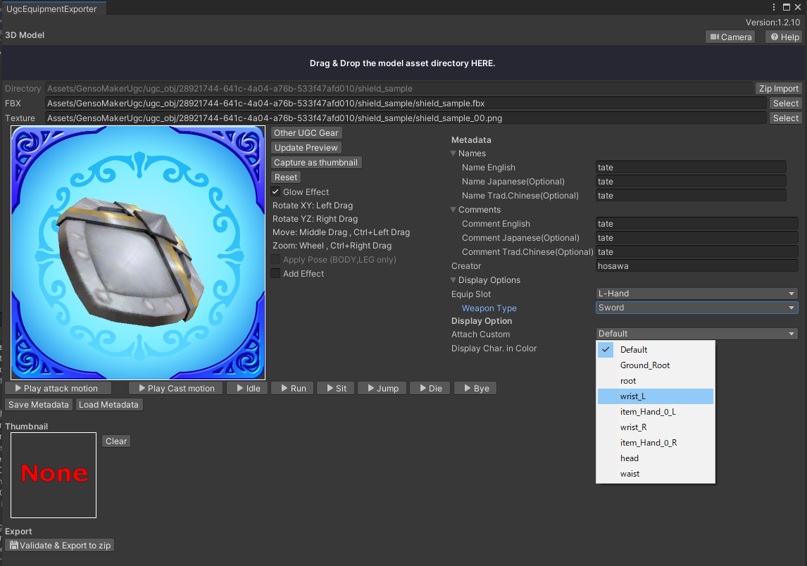 With this update, we are making a slight change to the layout of the UgcEquipmentExporter in the Unity Plugin version. This adjustment is necessary to accommodate future UI updates, as the previous layout no longer had enough space. The window has been widened horizontally, as shown in the image.