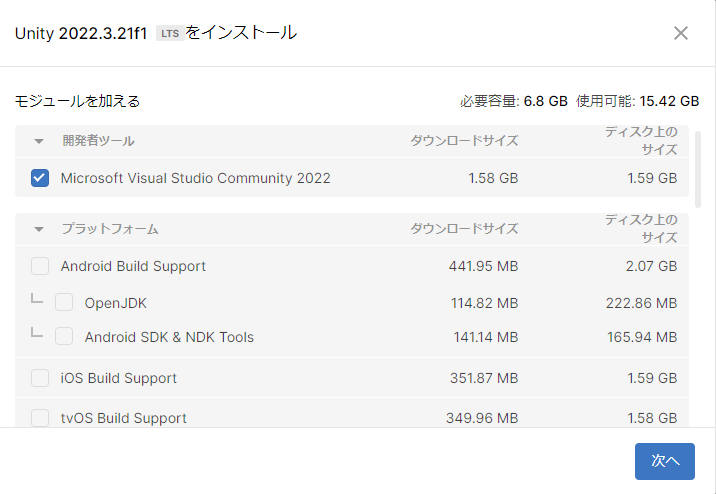 ③Unity Editor Installation screen: