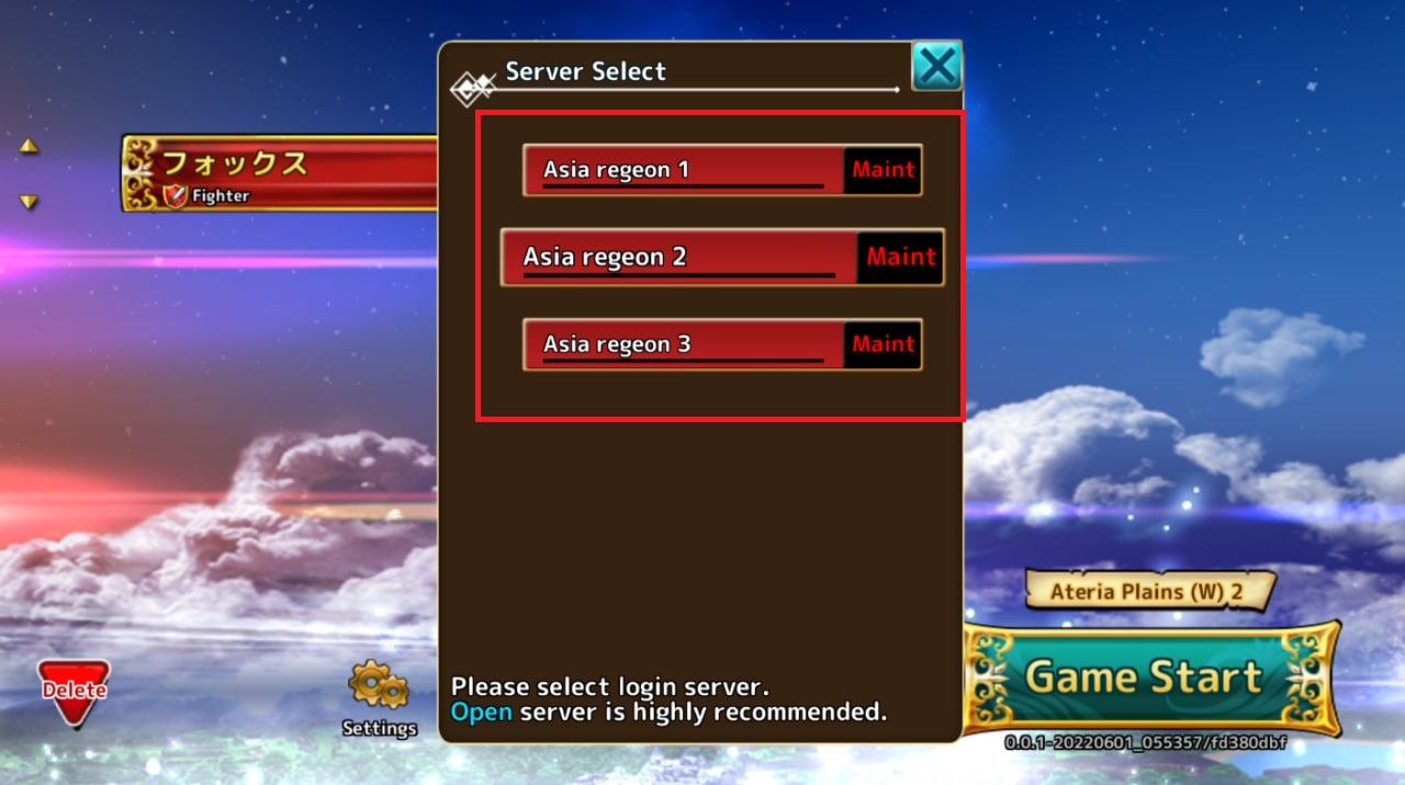 When selecting regions, the status of the server will be shown as “Vacated” “Crowded” “Very Crowded.” Players will be able to decide whether they would like to play in a region based on the amount of players in it.
