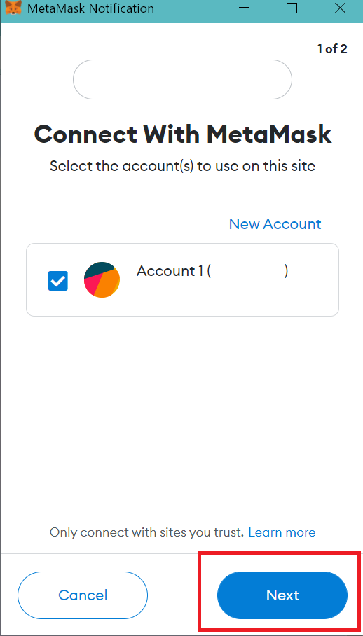 ⑤ Click “Next” when prompt to select your MetaMask wallet.