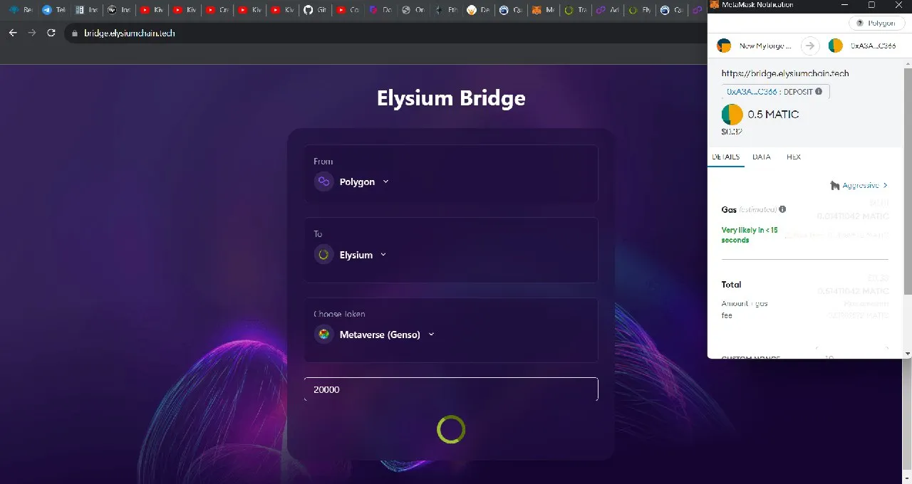 ①Go to Vulcan's Elysium DEX and bridge both tokens from Polygon to Elysium. Find the bridge here.