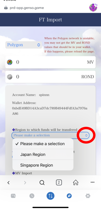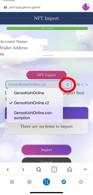 ▼ If you want to import NFTs (to bring into the game)