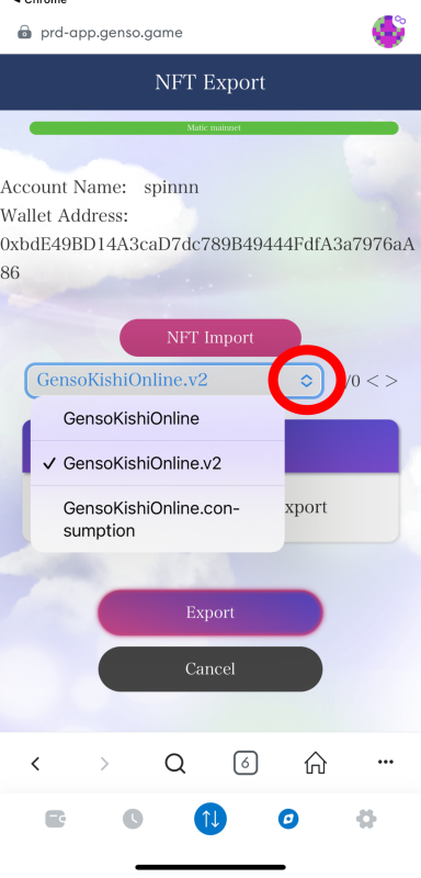▼ If you want to export NFTs(If you want to take them out of the game)