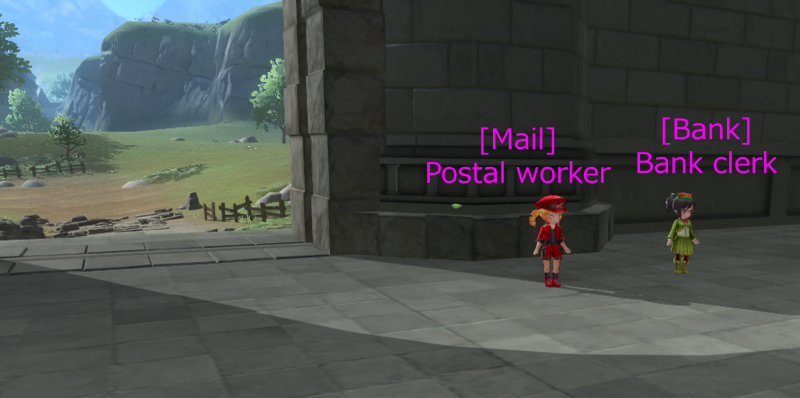 • When you pass through the castle gate, you'll find '[Mail] Postal worker' and '[Bank] Bank clerk'.