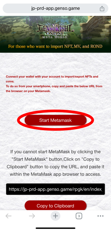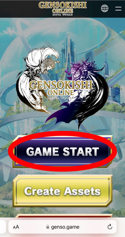 ① Access the official GensoKishi website using Safari.(https://genso.game/en/