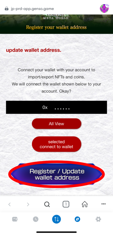 ③ Register/Update wallet address: Follow the on-screen instructions to register your wallet.