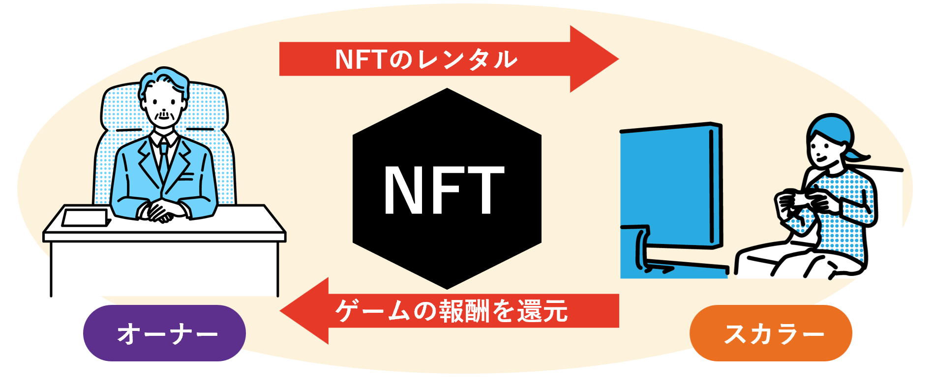 - オーナーがNFTをスカラー(ゲームプレイヤー)に貸し出す。