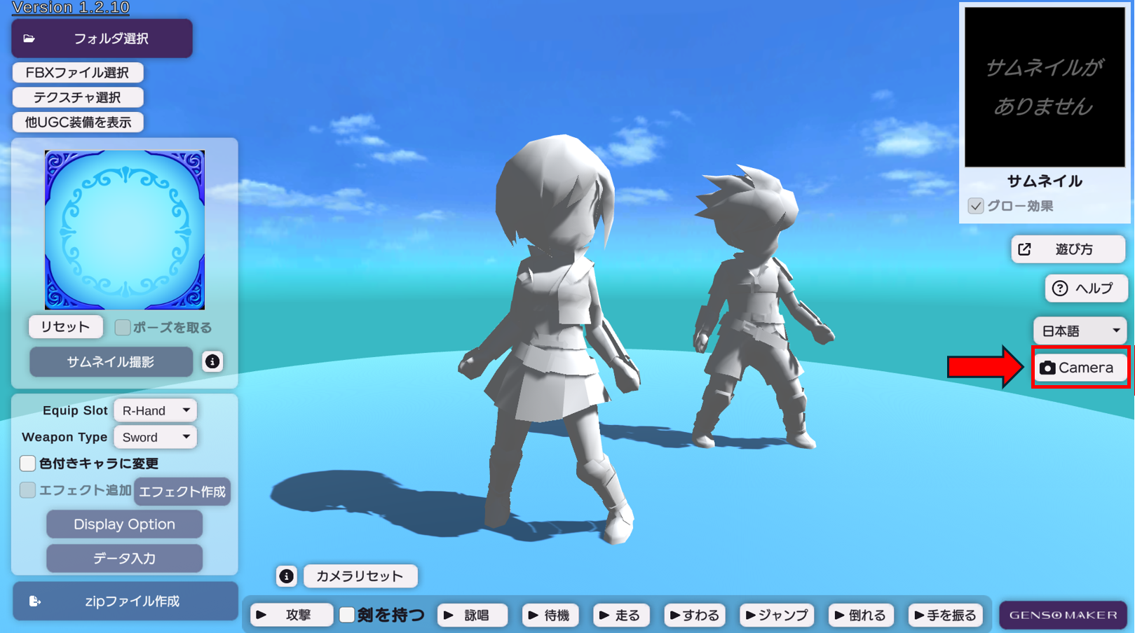 Unityプラグイン版ではUgcEquipmentExporter右上にCameraボタンが追加されていますので、