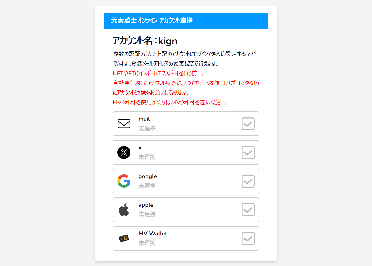 - 既存の元素騎士プレイヤーの皆様にもMVウォレットを公開いたします。