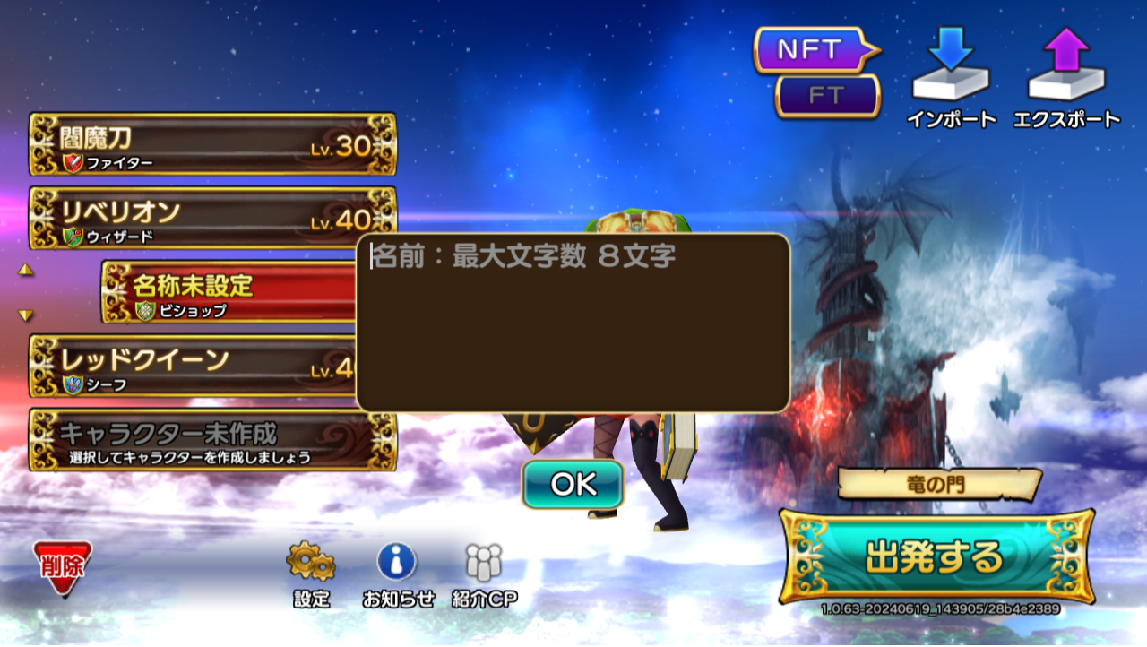 キャラクター選択画面にて、該当キャラクターの名前が「名称未設定」と表示されるようになります。