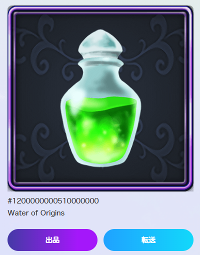 ① マイインベントリ内のNFTを選び、新たに追加される「転送」ボタンを押します
