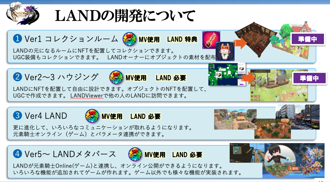 LANDで出来ること(遊び要素、収益化方法)を短い期間で定期的にアップデートを行っていき、LANDオーナーの方々や今後LANDを購入される方々の皆様に楽しんでいただけるコンテンツを目指しております。