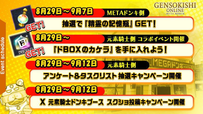 2024年8月29日より、ドン・キホーテ様のメタバース:METAドンキが、元素騎士ユーザー限定で、先行公開されます。