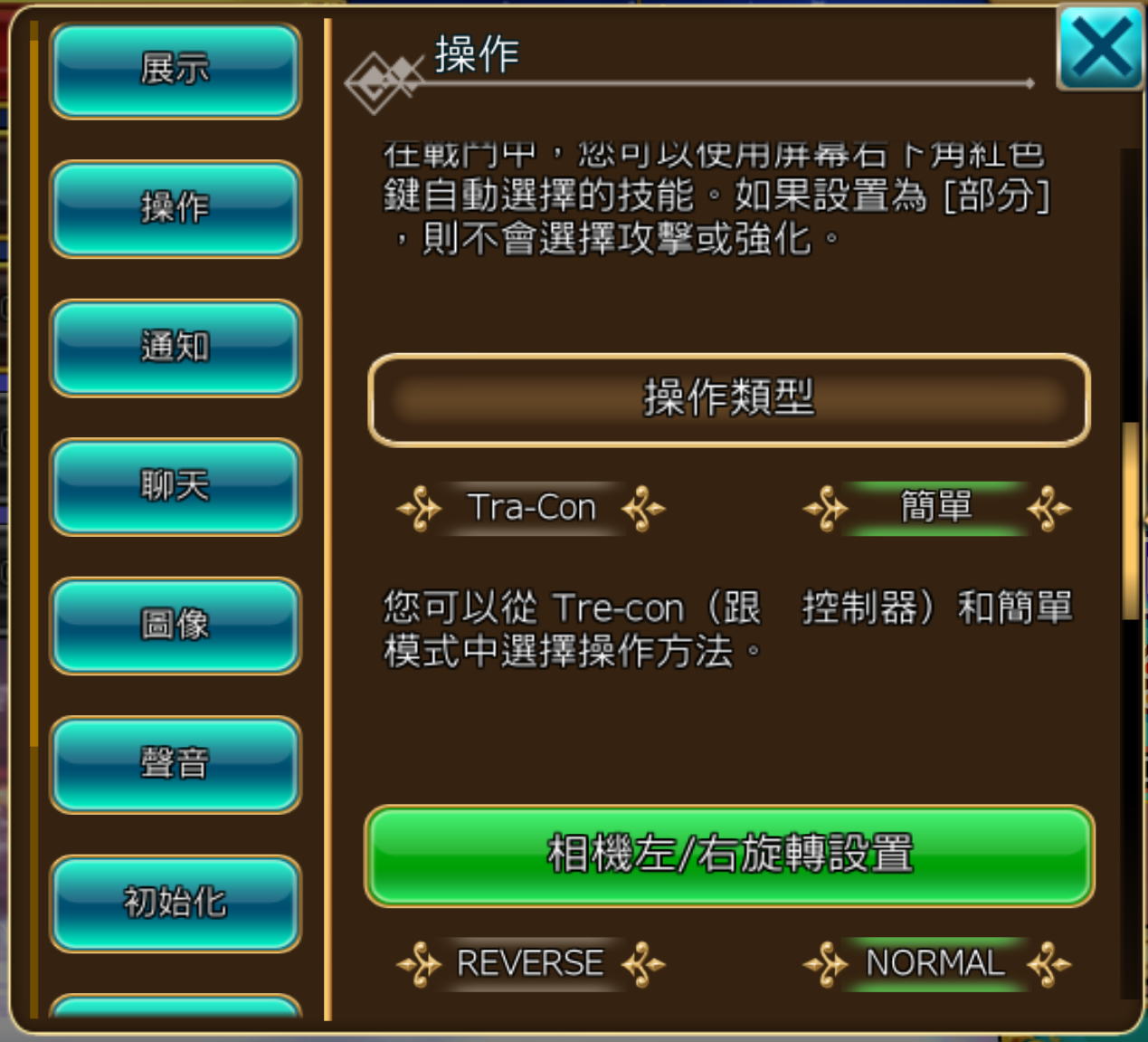 若您希望使用原本操作方式,請至「設定>操作>操作類型」中選擇「Tra-Con」模式。