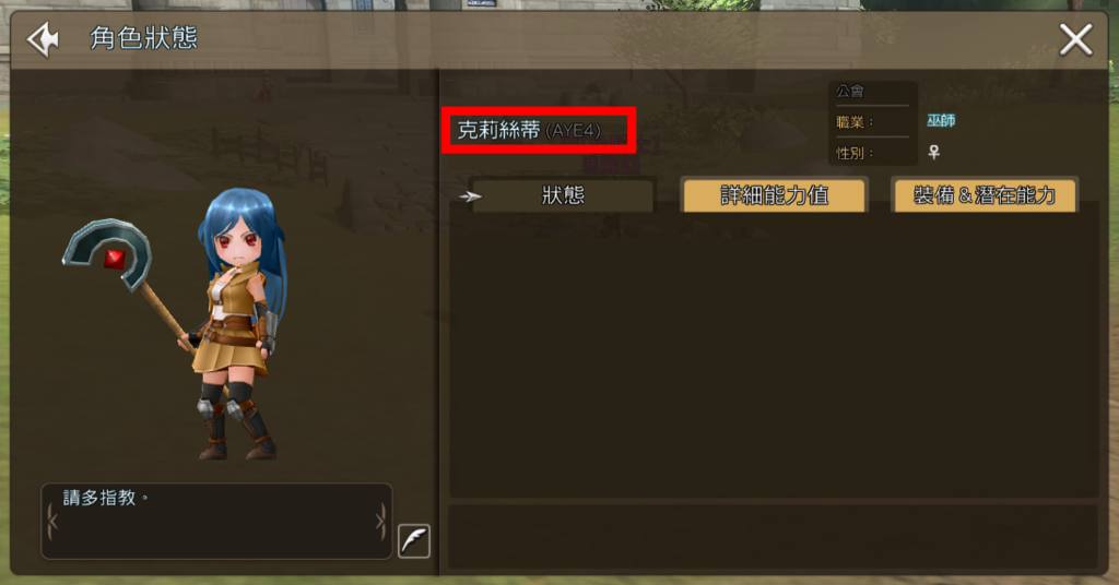 ※ 元素騎士Online中的角色名稱、帳號ID ↓