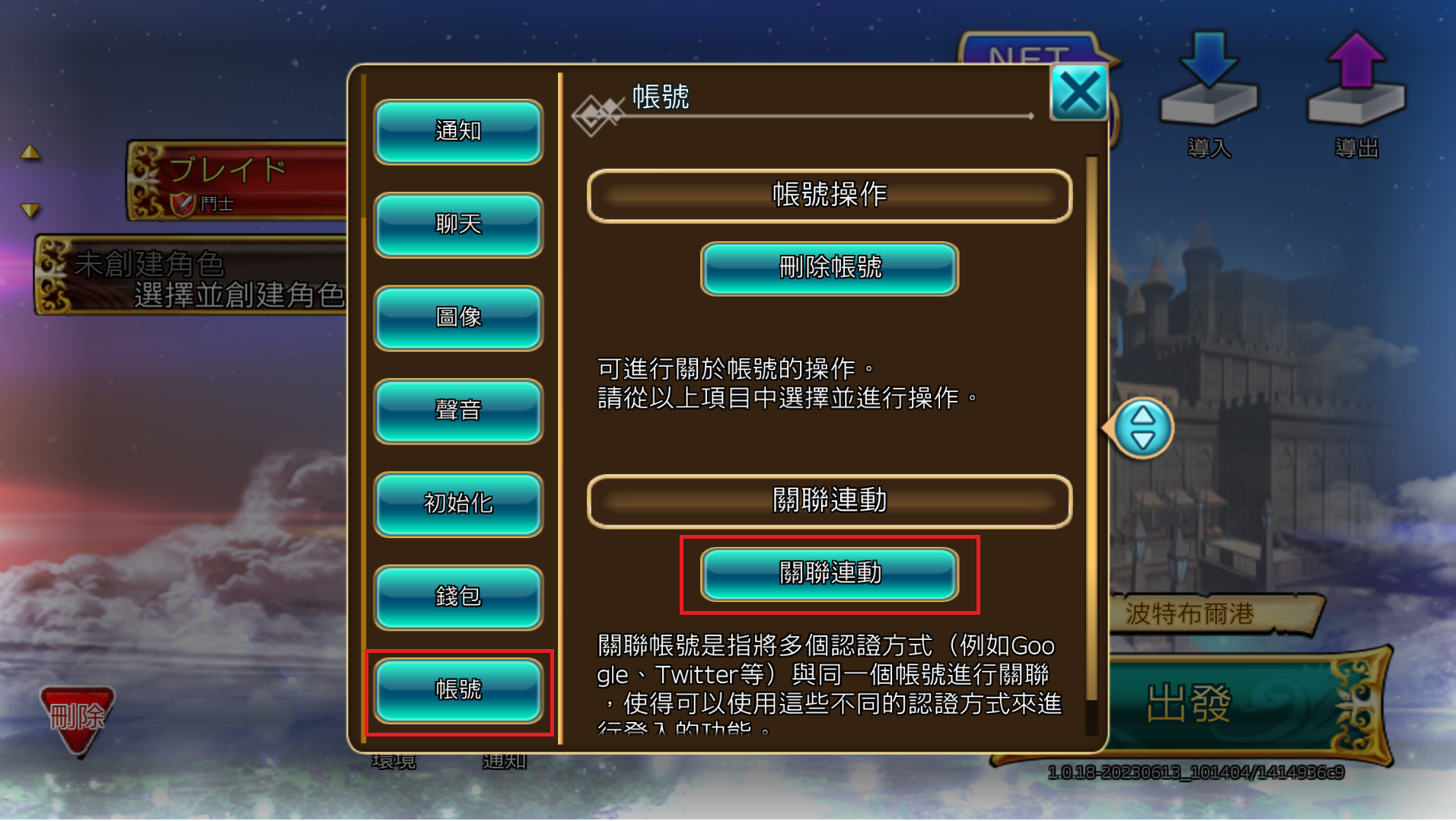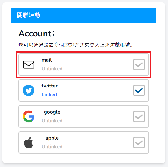 選擇帳戶,點擊帳戶關聯