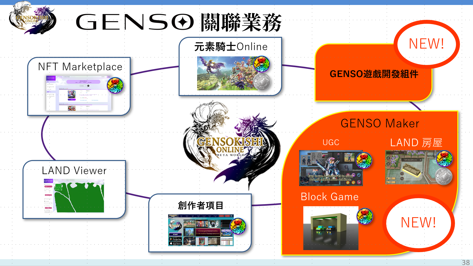 這次我們將以UGC(User Generated Contents)的方式建構GENSO元宇宙世界,並面向大眾公開"GENSO遊戲開發工具"。透過使用這個GENSO遊戲開發工具,您不再只看到運營方能夠創建GENSO的世界,而變成可以讓使用者自己來加入創建遊戲和元宇宙的世界。