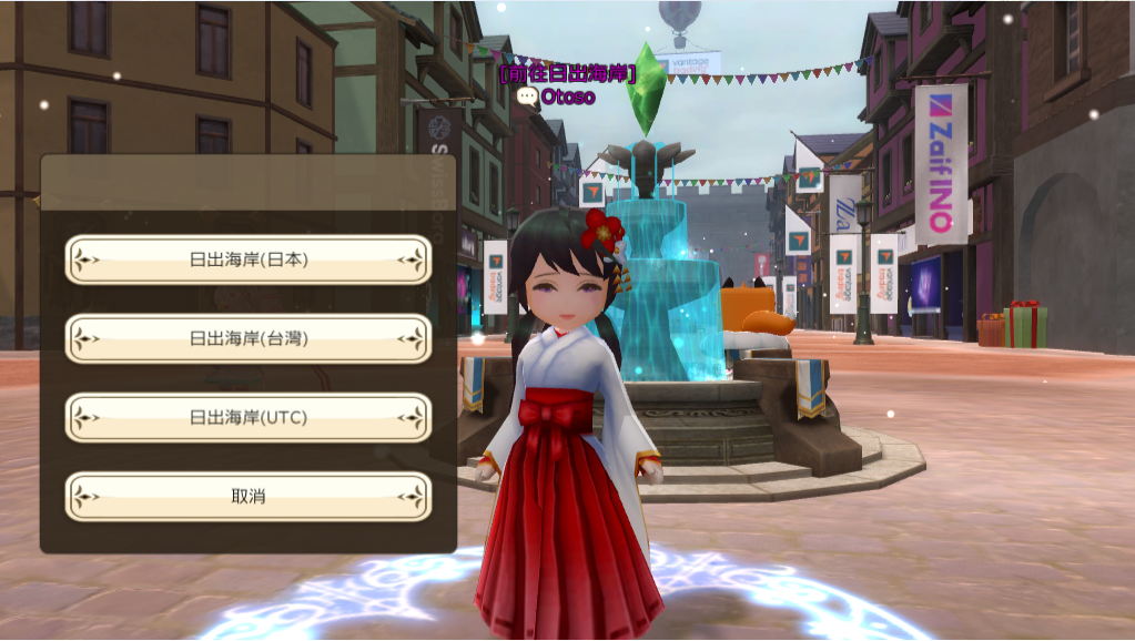 ※為避免地圖過於擁擠,每個地圖各提供 3 個區域供玩家選擇。若「商店街1」人太多的情況下,玩家可以選擇「商店街2」或「商店街3」進入對應的日出海岸分區。
