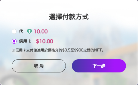 ※ 信用卡支付僅適用於價格介於 $0.5 至 $900 之間的 NFT。