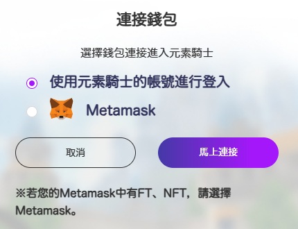 請透過「使用元素騎士的帳號進行登入」選項登入。