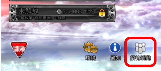 ① 開啟角色選擇頁面中的「招待活動」選單。