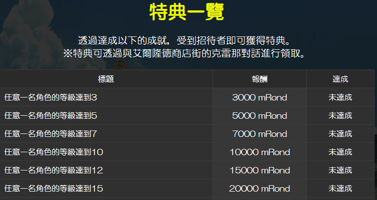 ③ 獲得邀請的玩家可以透過獲邀者專用的選單來確認取得報酬的條件,以及達成條件時,能取得的報酬內容。