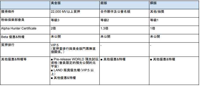 與封測「Alpha版本」活動一樣,我們將考慮按照門票等級來給予福利:黃金版>銀版>銅版。