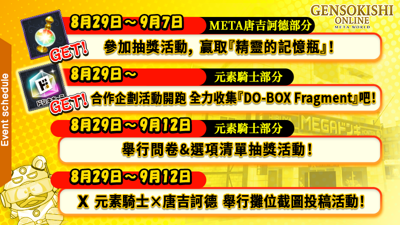 自2024年8月29日起,唐吉訶德的元宇宙:META DONKI將提前對元素騎士用戶開放。