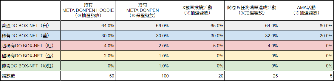 ※請注意,於9月17日(二)12:00(JST)之後獲得META DONPEN的玩家將無法獲得DO BOX-NFT