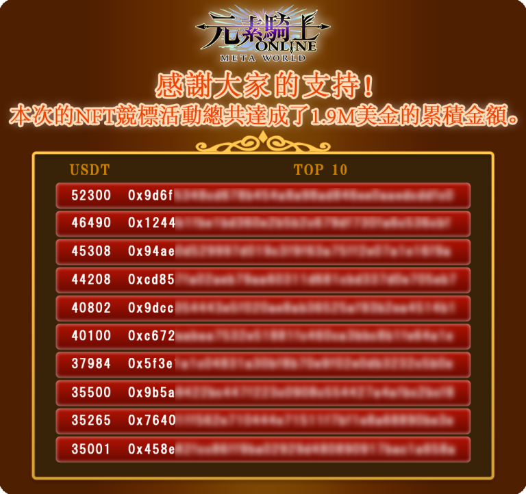 感謝您參與元素騎士ONLINE第一次 NFT 拍賣。